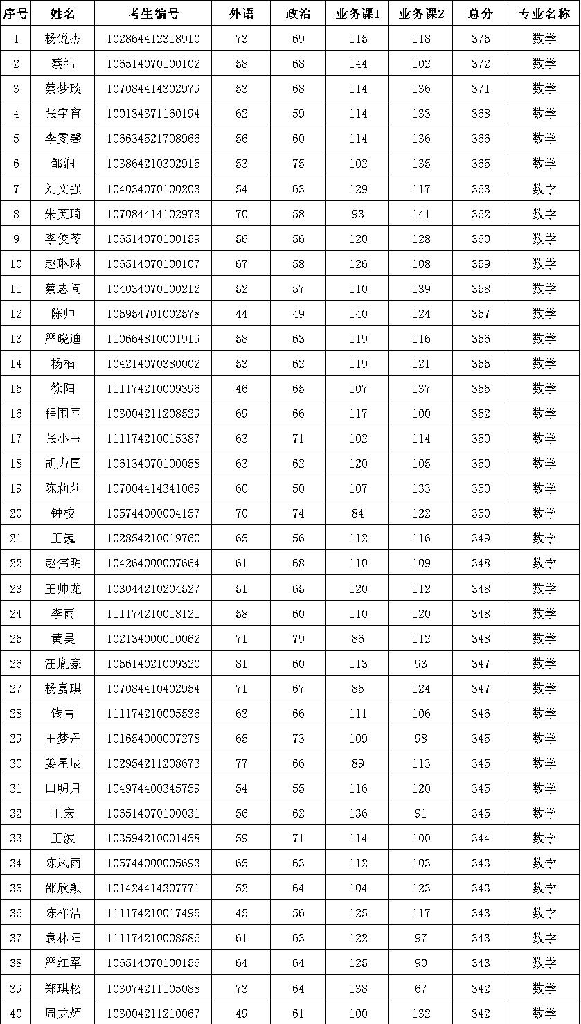 根据《HO5HO 2024年硕士研究生招生复试录取工作实施细则》中数学调剂的基本要求,及复试比例1:1.5的差额,按照初试总分由高到低的原则,复试面试名单如下: