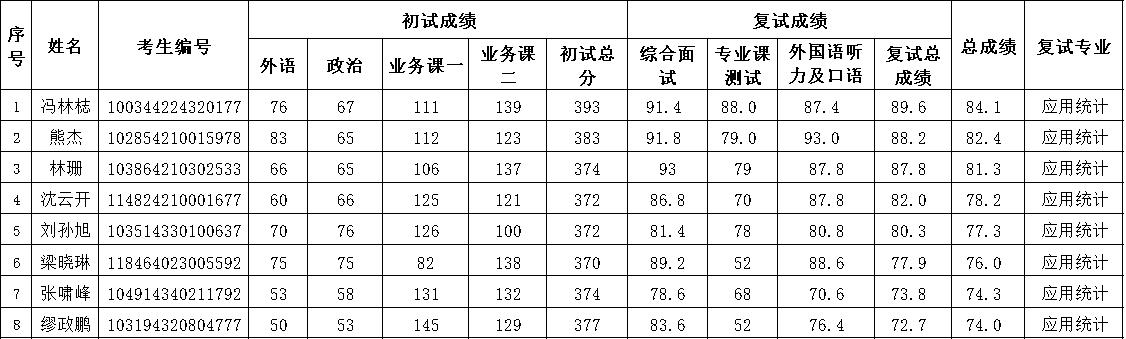 备注:复试成绩=综合面试×50%+专业课测试×30%+外语听力及口语面试×20%,复试成绩不合格(低于60分),不予录取。
