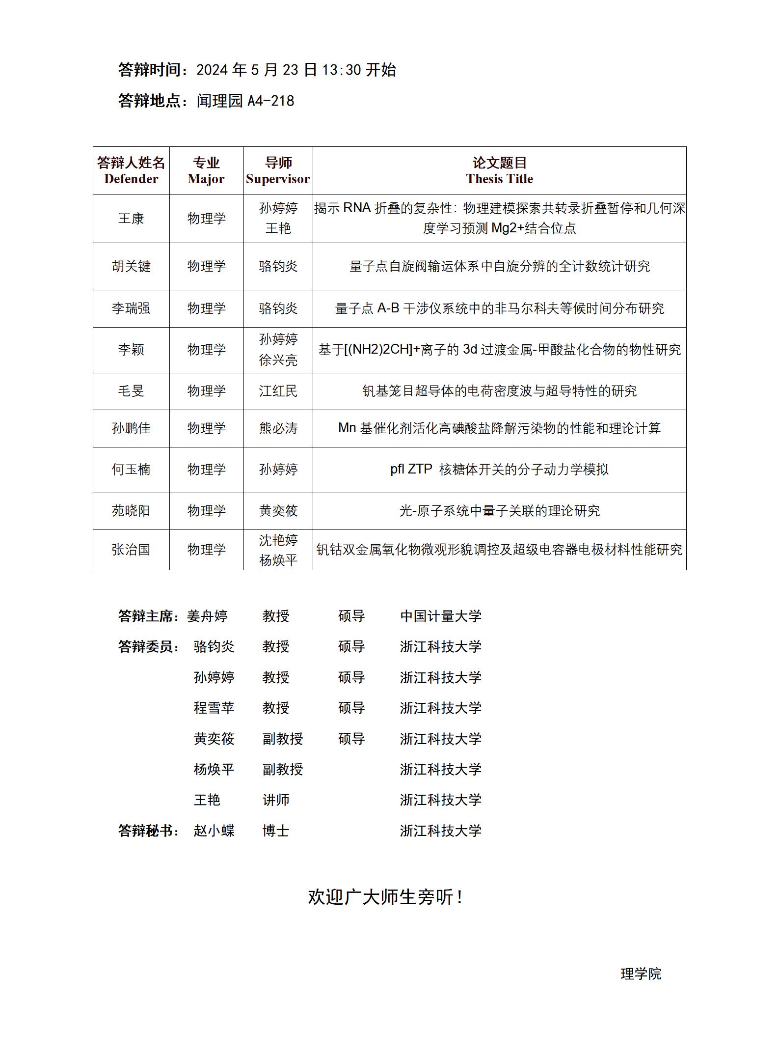 2024年HO5HO 硕士研究生学位论文答辩公告(物理学2组)