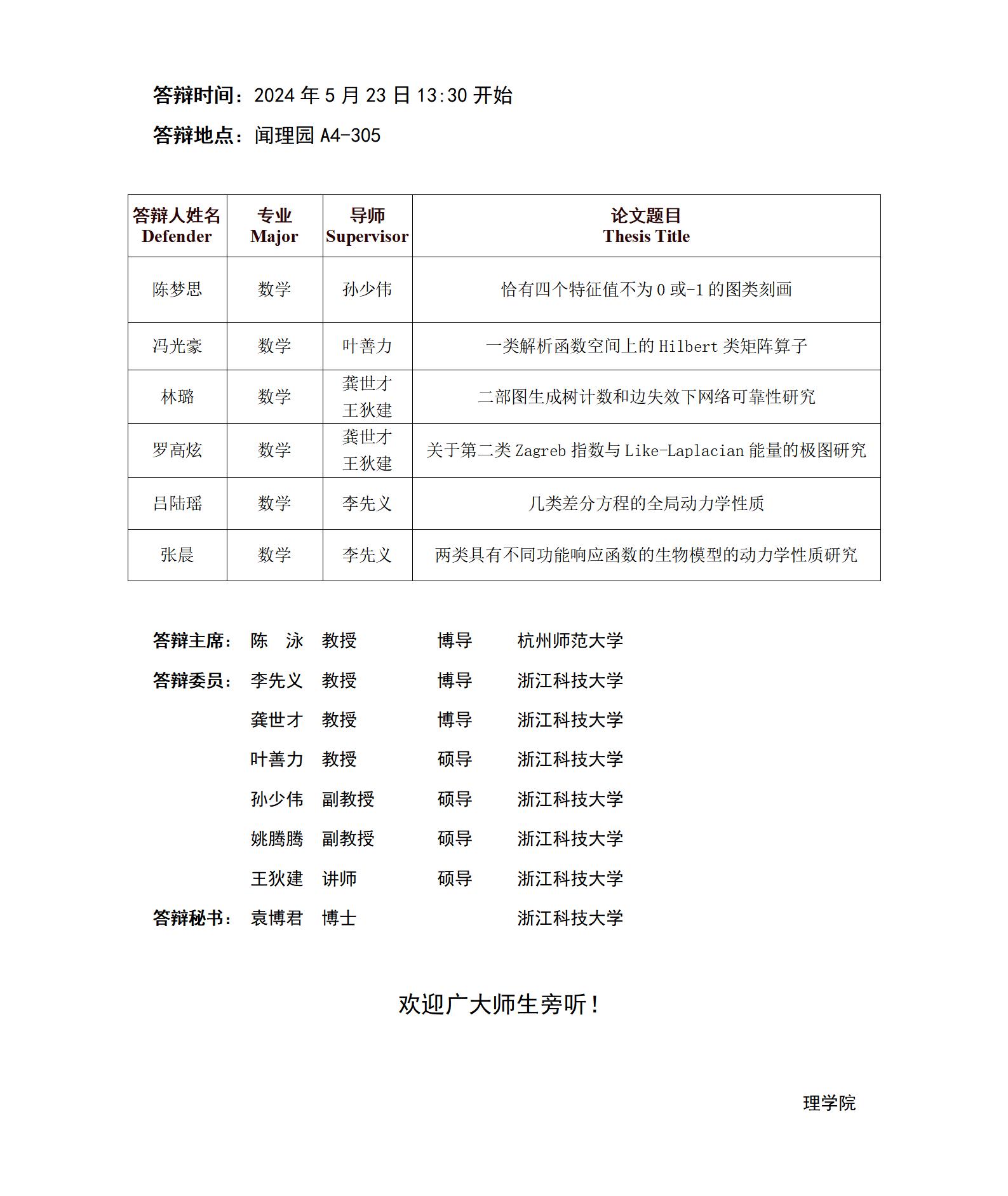 2024年HO5HO 硕士研究生学位论文答辩公告(数学1组)