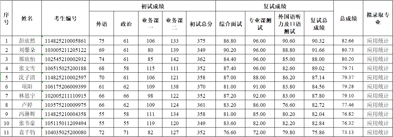 经考生初试、复试等各个环节,学院招生工作领导小组确认,现对拟录取的考生进行公示(详见下表),公示时间为2025年4月11日至4月17日(7天),如有疑义,请以书面的形式反映,反映问题要实事求是,署本人真实姓名。