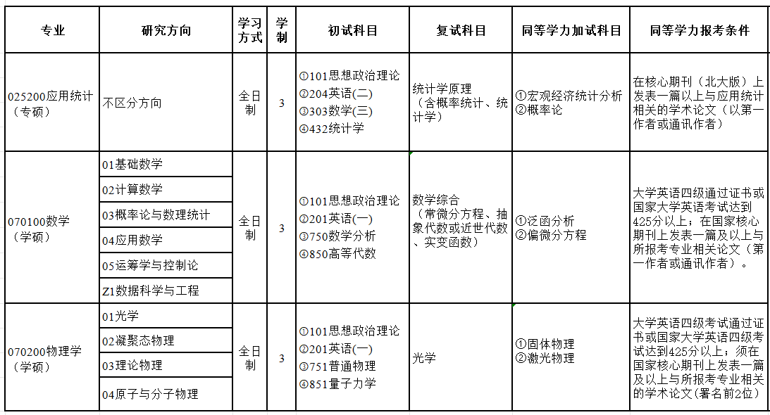 HO5HO 2025年硕士研究生数学、物理学复试考试大纲