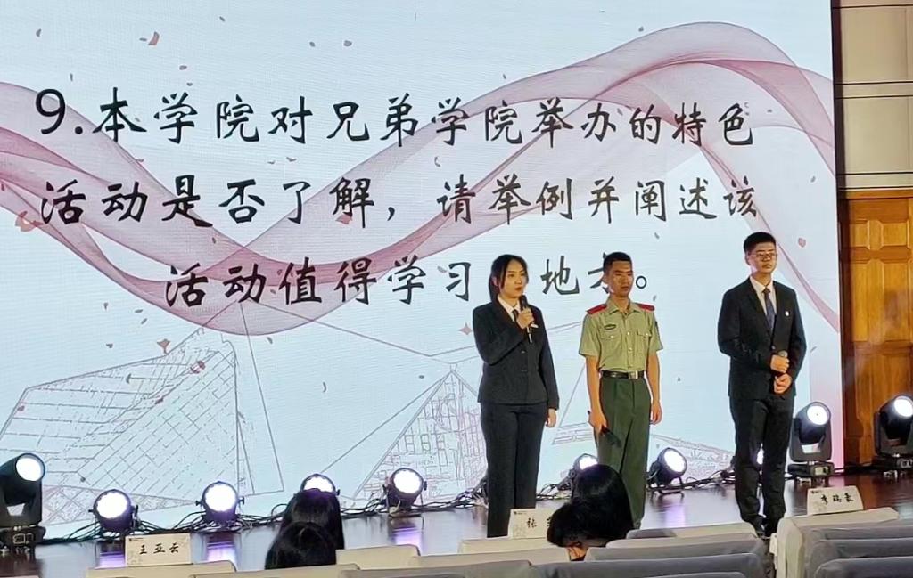 现场答辩环节,就“本学院对兄弟学院举办的特色活动是否了解,请举例并阐述该活动值得学习的地方”这一问题,HO5HO团委学生会主席团成员梁蔚沉着冷静,顺利完成本次答辩。她举例经管学院的“经彩学子”、生化学院的“三实”晚会等活动。其中,生化学院组织的南屏社会实践项目已经在南屏开展了多年,而且每年都有创新,每年都有新成果,他们在活动的传承上有非常多值得我们学习的地方。