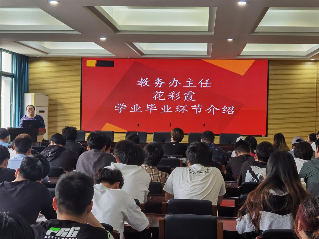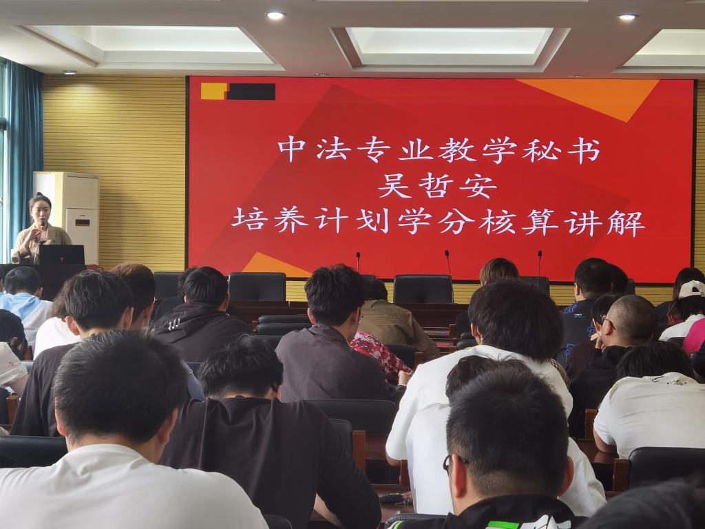 召开学风建设大会。本次会议由学院学工办主任蔡瑞康主持,教务班主任花彩霞、中法专业教学秘书吴哲安讲解,全体学业预警学生参加。