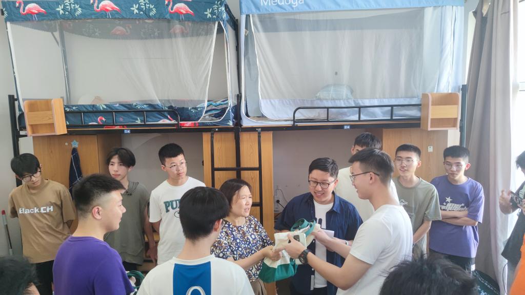 党委书记张掬婴、 党委副书记黄奕筱、学工办主任蔡瑞康、安吉辅导员琚常鑫、全体新生班主任和助理班主任等一同走访学生寝室。走访期间,张书记向学生和家长介绍了学院基本情况和近年来典型的育人成果案例。张书记提到,每年学院都有一名学生获得学校高荣誉“卓越学子”称号,并有多位优秀学长学姐拿到了国家奖学金,对新生寄予殷切希望,祝愿每位新生都能在今后的学习生活中积极奋进,梦想成真。新同学们对此非常感兴趣,表示会努力学习。黄书记提醒新生新学期要抓紧进入学习状态,学校真山真水环境优美,是一个学习的好地方,要找到适合自己的学习方法。学院了解到当天有新生过生日,特意准备了学习生活礼包,希望新生能够在新的环境秉承“明理笃学,慎修博用”的院训,保持对科学的好奇心,不断探索,攻坚克难,通过四年的积累和沉淀,成为更好的自己。