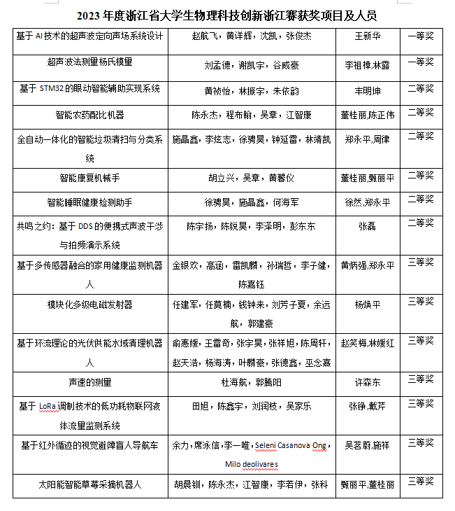 我校学子参加浙江省第十四届大学生物理科技创新竞赛取得佳绩