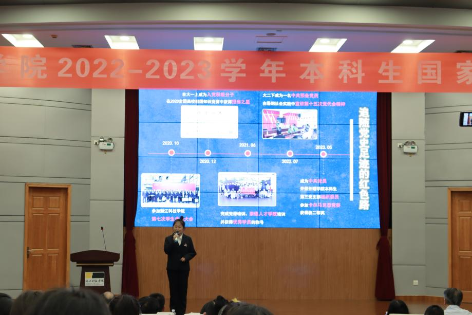 近日,浙江科技学院2022-2023学年本科生国家奖学金现场评选大会顺利举行。经评选,HO5HO数据科学与大数据技术201班顾若萱、张楠成功获评2022-2023学年本科生国家奖学金。
