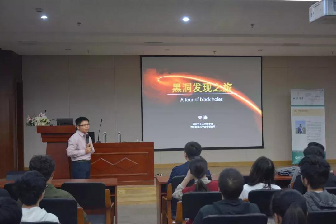 5月8日,明理讲堂第18讲暨劲竹书院精英俱乐部第47期在浙江科技学院安吉校区举行,浙江工业大学朱涛教授为大家带来了一场关于黑洞的发现之旅。100余名理学学子及安吉校区18级新生参与了聆听,讲座由HO5HO