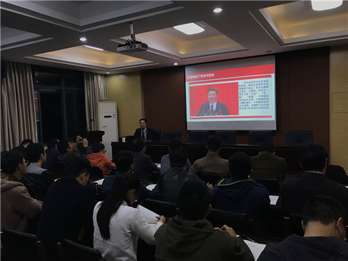 李泽泉书记以“新时代、新气象、新作为”为题,从中国特色社会主义进入新时代的历史依据和重大意义,新时代中国共产党的历史使命、指导思想和战略安排,以及新时代中国特色社会主义发展的九个方面工作部署等三个部分,紧密结合学校实际,以详实的数据、严密的论证,为学院师生党员作了一场内容充实、见解深刻的十九大精神宣讲报告。学习过程中师生党员认真学习、积极记录,现场秩序井然,李书记的精彩报告博得与会人员的热烈掌声。