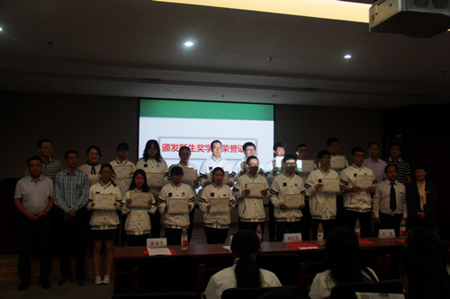 授予何金亮等16位同学“新生奖学金”的荣誉称号,并将把这一喜报送达到学生的高中母校。开学典礼的最后,全体师生共同奏唱院歌《理学之歌》,鼓舞新生们奋发有为、心向远方,在HO5HO