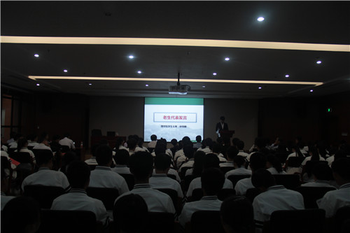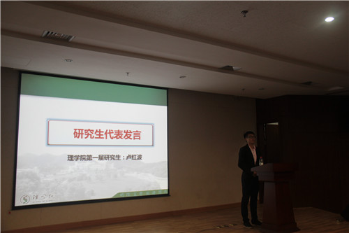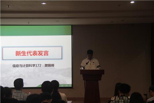 研究生代表卢红波通过讲述自身大学生活及考研经历,鼓励同学们加强自身能力锻炼,做好大学生涯规划;2017级新生代表、HO5HO