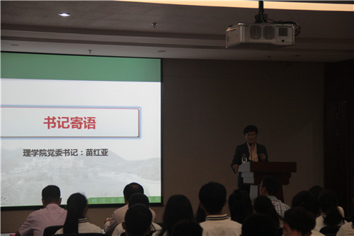 典礼上,苗红亚为新生送上寄语。她希望新生尽早适应大学生活,通过学院平台发挥理学优势,明确自己的学习方向,学会自我学习、自我管理。