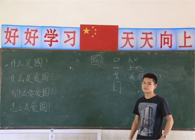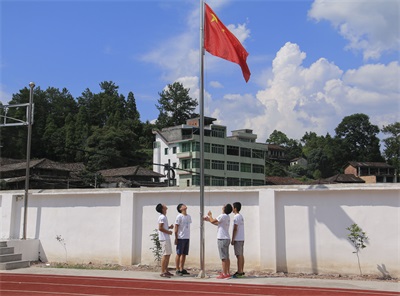 为了培养孩子们的爱国主义情怀,磨炼孩子们自强不息的革命精神,烈日炎炎,老师们带着孩子们来到学校的操场举行升旗仪式。当鲜艳的五星红旗在蔚蓝的天空下冉冉升起,平时爱嬉戏打闹的孩子们在这一刻也变得庄严肃穆。缅怀先烈,感恩部队,每个人的眼神中都流露出对国旗的崇敬,对祖国的热爱,以及为国家的和平稳定而幸福。升旗仪式结束后,所有孩子们在国旗下宣誓:继承遗志,发扬传统;茁壮成长,开创未来;锻炼身体,保卫祖国;好好学习,天天向上!