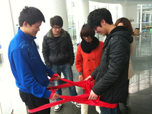 学生物理党支部本学期第一次活动在B区羽毛球场举行。本次活动的主题为“三八妇女节,巾帼不让须眉”。这期活动与以往不同,我们更注重知识,创新。活动分为三个内容,分别是:一,说出中国历史上的知名女性,考验了大家的历史知识。二,“心有万千结”,此游戏主要是考大家的创新能力,让大家除了学习之外,动动脑;三,“地雷阵”,这个游戏充分考验了大家的合作能力和对团队的信任。