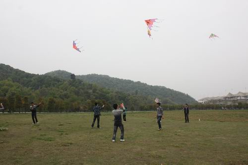 现时值四月中旬,花盛而草绿,水清而山秀,再加上早上刚下过一场雨,雨过云开后,爽风朗日,正是大家出来散心活动,舒展经骨,锻炼身体的好时候——于是,我们第二学生党支部决定在这第三次集体活动中举办放风筝大赛。