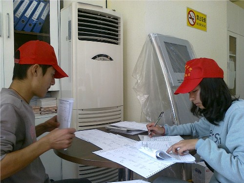 早上8点30分,分队队长带领队员乘坐校车到达各自所在社区。在这微凉的天气里,志愿者们都拿出了饱满的热情,去迎接一天的工作。社区工作人员分配任务并进行细心的工作指导之后,各组志愿者相继出发,身着黄色马夹,头戴小红帽,踏上上门普查之路,主要进行户主信息核实工作。从储藏室到沿街商铺,从居民楼一楼到七楼,每个角落都留下了志愿者的脚印。大部分居民对志愿者的上门表示理解,很配合工作,极小部分因为隐私或其他原因不肯配合的,经过社区工作人员协调后也都使得我们的工作顺利进行。其他志愿者则留在办公室进行资料整理,一项项仔细对照信息,工整地抄写长短表。还有部分志愿者负责电脑录入,电话预约工作,大家分工合作,井然有序。社区工作人员对我们的工作相当满意,同时也对我们浙江科技学院的志愿者表示了由衷的感谢。