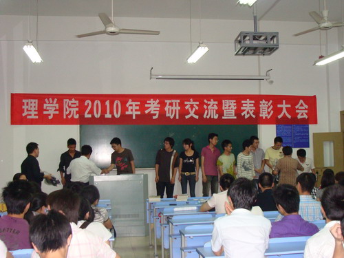 6月11日,HO5HO在A3-110隆重召开2010年考研表彰暨交流大会。学院党总支书记苗红亚、院长岑岗,信息与计算科学系主任朱婉珍、辅导员和HO5HO2010年考上研究生的同学以及07、08级准备考研的学生参加了本次大会。会议由辅导员丁炜主持。
