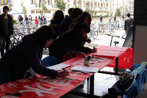 本次节水宣传活动吸引了师生们的参与,在横幅上签上了自己的名字,并在便利贴上写上了自己对节水的看法。大家纷纷表示节约用水时每个大学生应尽的义务,他们会通过自己的实际行动来使那句“但愿地球上的最后一滴水,不是人类自己的眼泪”变成现实。
