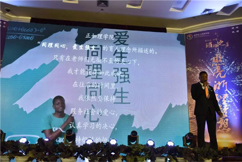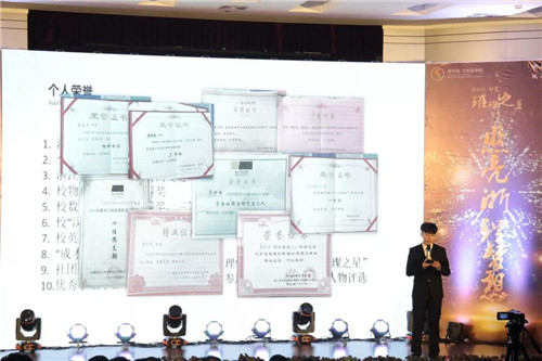 在今年的璀璨之星颁奖典礼中首次增加了教师表彰环节。HO5HO云本胜老师、施英老师、石大力老师获得优秀教师奖,王长荣老师获得特别贡献奖。已然退休年龄的王长荣老师依然在三尺讲台上燃烧自己。在现场,他用一首诗表达了他内心的激动与喜悦。