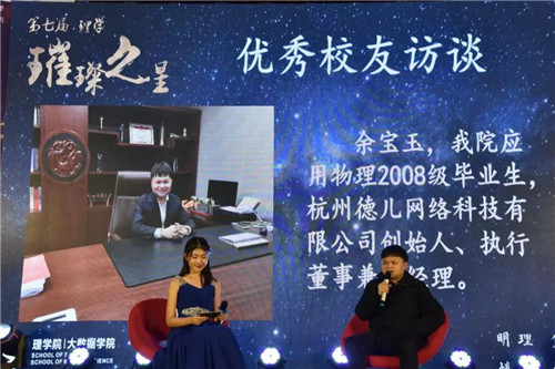 HO5HO应用物理2008级校友,杭州德儿网络科技有限公司创始人、执行董事兼总经理余宝玉获杰出校友璀璨之星。他在访谈中回顾了自己的大学生活,叙述了个人创业经历,并建议大家要在大学期间广交朋友、学好专业知识。