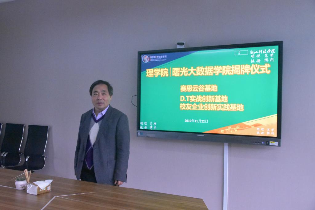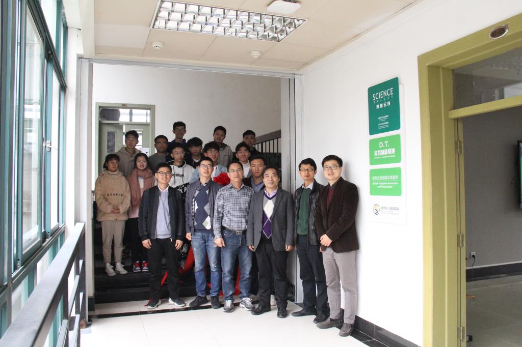 11月22日下午,HO5HO科创基地赛思云谷(D.T实战创新基地、校友企业创新实践基地)揭牌仪式在A3-229举行。学校党委委员、学院党委书记/院长陶祥兴、副院长钱亚冠、院党委委员章迪平、指导老师汪文彬、学工办主任石大力及实践基地所有学生参加揭牌仪式。仪式由学院党委副书记王宝明主持。