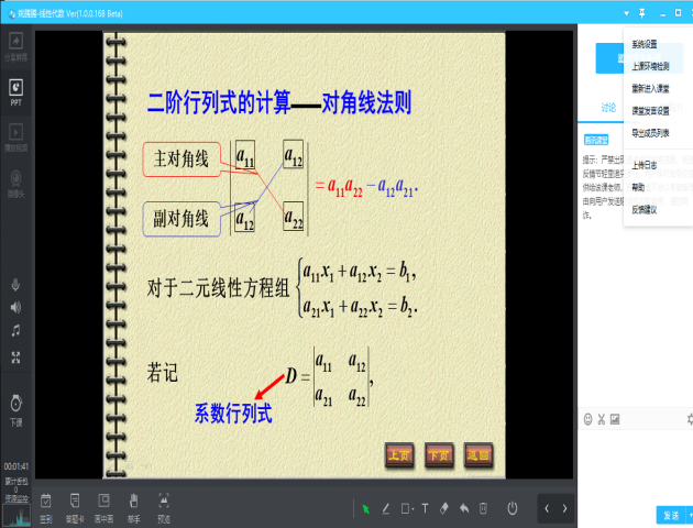 Ø 课中:主要采用腾讯课堂直播功能进行课堂直播教学。腾讯课堂支持在线即时互动教学,提供流畅、高音质的课程直播效果;支持PPT演示,白板书写、屏幕分享,画中画、视频播放等多样化的授课模式。同时支持游客模式,便于督导组随时听课。我会在直播授课过程中,穿插提问,而学生会在右侧的对话框文字互动,或使用举手功能上台语音回答问题。为了避免教学过于枯燥,我还会在课间播放音乐让学生轻松一下。