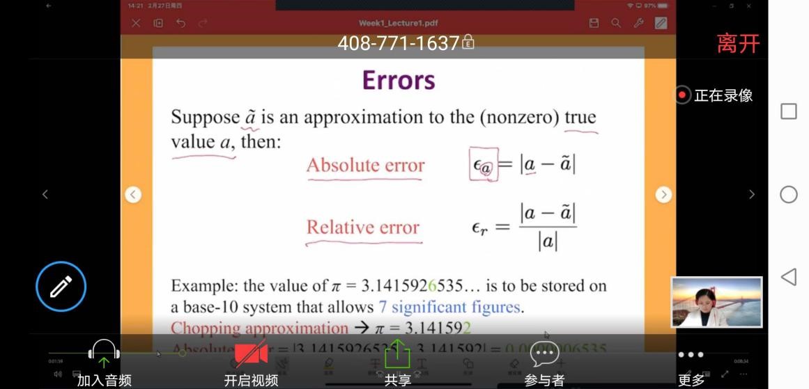 数学系组织的年终教学沙龙活动中,朱婉珍教授给我们青年教师作了题为“卓越教学始于教学设计”的教学讲座,使我受益匪浅。切实理会了上好一门课有“三要”:一要树立一种正确的教学观,立志做一名好教师;二要精心设计每一次课,全身心投入到教学实施;三要建立一种良好的师生关系,有效落实教学目标。线上教学亦是如此。以下是《数值计算方法(英)》第一周课程的在线教学的教学设计。
