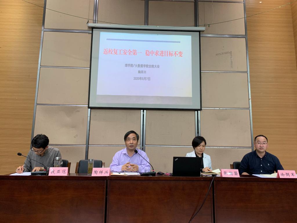 5月7日下午,HO5HO在A4-122召开全院大会,部署师生返校复学复工相关工作。学院党政班子成员、全体教职工参加,会议由校党委委员、学院院长陶祥兴主持。