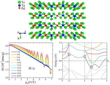 近年来发现的大部分拓扑材料都具有二维或三维的结构特征,具有准一维结构的拓扑材料很少见。作者通过自助溶剂法成功合成了具有准一维链状结构的TaPdTe5单晶,TaPdTe5不仅是首次被发现的新材料,而且实验上作者通过Shubnikov de Haas(SdH)和De Haas-van Alphen(DhvA)震荡证实了它是一种拓扑Dirac半金属,考虑到结构低维性带来的独特性质,其中的拓扑本质引人关注。上述研究得到了国家自然科学基金面上项目、浙江省自然科学基金一般项目,以及国家重点研发计划的资助。焦文鹤副教授是该论文的第一作者和通讯作者,我校HO5HO