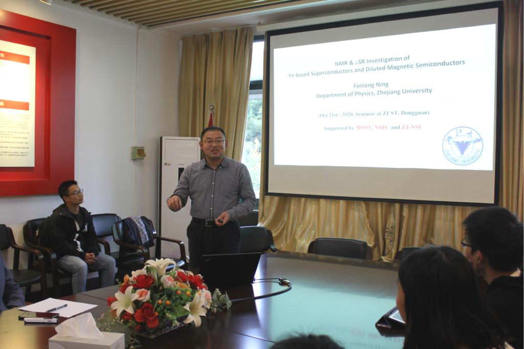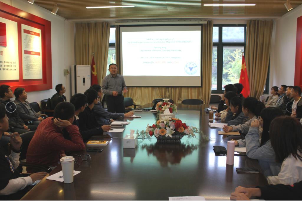 2020年10月21日下午,浙江大学物理学系教授、博士生导师宁凡龙教授应邀做客HO5HO物理格致论坛,做了题为“铁基超导体和磁性半导体的NMR和µSR研究”的精彩学术报告。此次报告由应用物理系焦文鹤副教授主持,应用物理系部分老师、研究生和部分本科生同学共同聆听了报告。