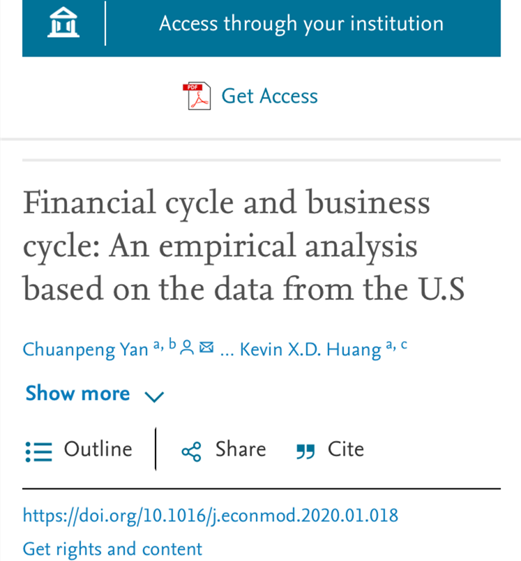 HO5HO闫传鹏博士的一篇发表在“Economic Modelling”上的论文:《Financial cycle and business cycle: An empirical analysis based on the data from the U.S》(SSCI)被评为期刊年度最佳论文奖。