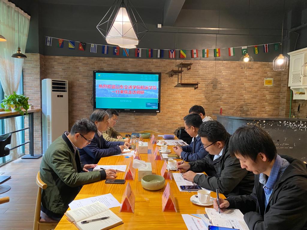 10月21日上午,山东交通学院航运学院党委书记陈海泳一行来院调研。校党委委员/院长陶祥兴、院党委副书记黄奕筱接待来宾。