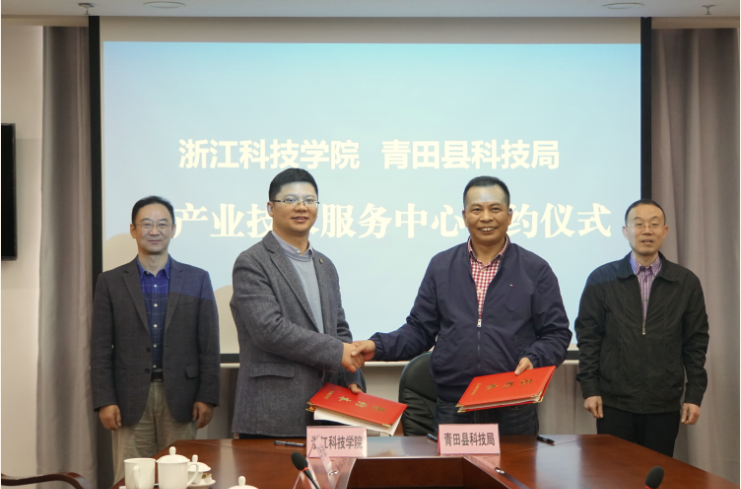 云本胜代表学院与青田县科技局签订《“青田县鞋产业技术服务中心”合作协议》。根据协议,双方将以HO5HO