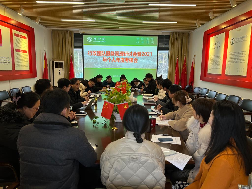 12月28日上午,HO5HO在A4-222会议室召开2021年度个人考核推荐会暨行政团队服务管理研讨会,校党委委员、院长陶祥兴,院党委书记张掬婴、副院长钱亚冠、院党委副书记黄奕筱、院长助理、工会主席章迪平以及全体行政人员参加本次会议,会议由办公室主任王铁军主持。