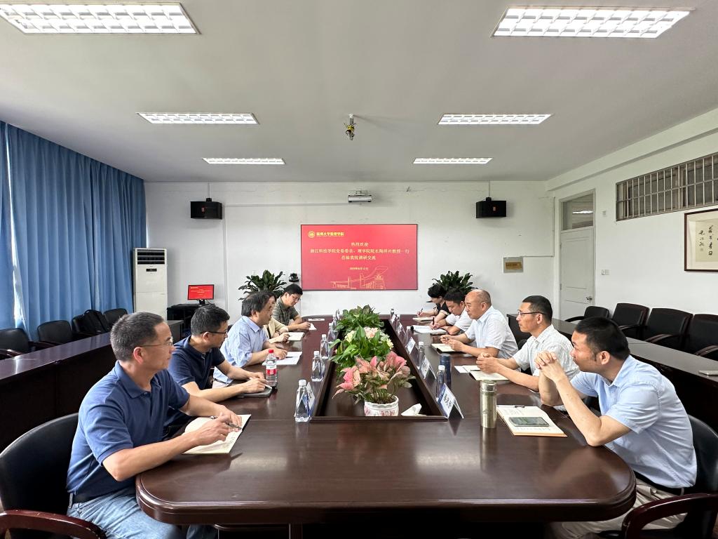 6月12日,我院党政班子一行赴温州大学数理学院调研学习。温州大学数理学院领导班子成员和相关系部老师热情接待。