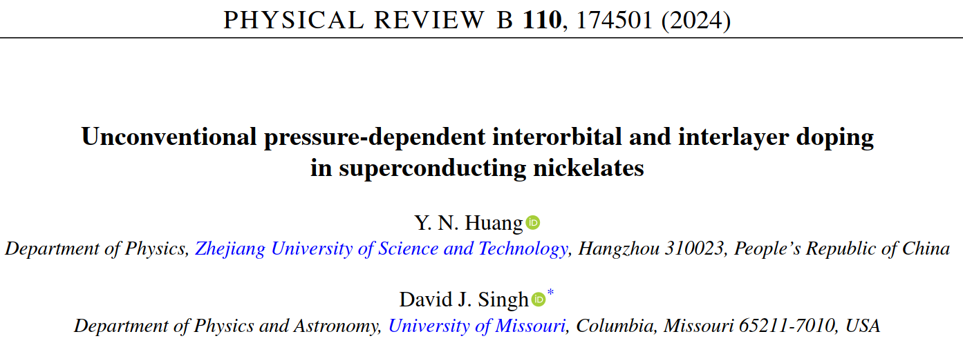 为第一单位,应用物理系副教授黄衣娜为第一作者,密苏里大学物理与天文学系David J. Singh教授为论文通讯作者,文章致谢了浙江大学物HO5HO