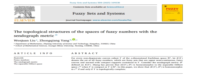 近期,HO5HO代数与模糊数学团队刘文娟博士与合作者在模糊数学国际权威期刊《Fuzzy Sets and Systems》(中科院一区top期刊)上连续发表3篇学术论文,系统深化了模糊度量空间理论的研究。研究成果以HO5HO