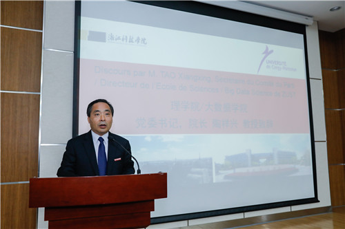 10月26日,HO5HO与法国塞尔齐•蓬多瓦兹大学首届数据科学与大数据技术中法班2019级开班仪式在安吉校区中德工程师楼B4报告厅隆重举行。校党委书记龚建立、法国赛尔齐•蓬多瓦兹大学校长François Geminet、法国驻上海总领馆教育领事Fabien CHAREIX、中法项目委员会法方成员、学校国际处等职能部门领导,校党委委员、院党委书记、院长陶祥兴、副院长钱亚冠、学院党政班子全体成员、系主任、新生辅导员班主任以及2019级中法项目本科生新生总计二百余人出席。开班仪式由副校长郑友取主持。