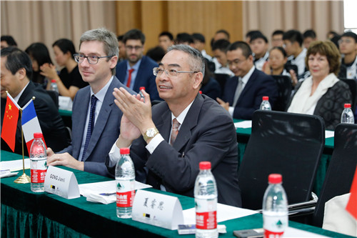 开班仪式上,龚建立、François Geminet、Fabien CHAREIX分别致辞,对前几届中法班的成功举办及取得的丰硕成果给予了充分肯定和高度评价,并对2019级的开班表示热烈的祝贺。陶祥兴作了热情洋溢的发言,寄语新生要做一个有“深度”、有“温度”的人,有“高度”的人。