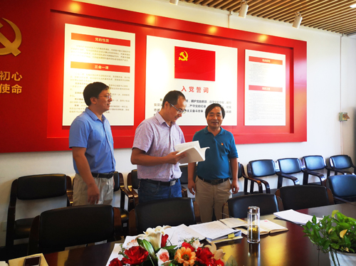 学院党委书记/院长陶祥兴简要介绍了学院的党建工作文化和“不忘初心、牢记使命”主题教育开展情况。巡回指导组成员郑锋仔细询问学院主题教育开展情况,并对学习教育、氛围营造、网站建设等方面提出了宝贵的意见和建议。郑锋现场检查了正在集中学习的学院行政党支部开展主题教育的情况,对如何更好地开展个人自学和支部集中学习提供了很多经验。