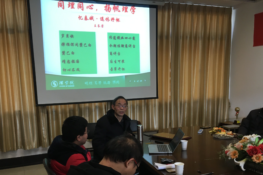 应用物理系邀请了刚刚退休的王长荣教授做了教学分享报告,王老师用一首自己写的“忆秦娥·退休抒怀”的诗词和大家分享了他从教四十年来的心得和体会,“学高为师,身正为范”,王老师提醒老师不仅要知识广博,也要品格高尚,如此才能彰显出一种作为教师应具有的人格魅力,他还鼓励青年教师要做到与时俱进,博学进取,营造出严谨务实的研究氛围,不断提高自身的教学实践能力和研究能力。