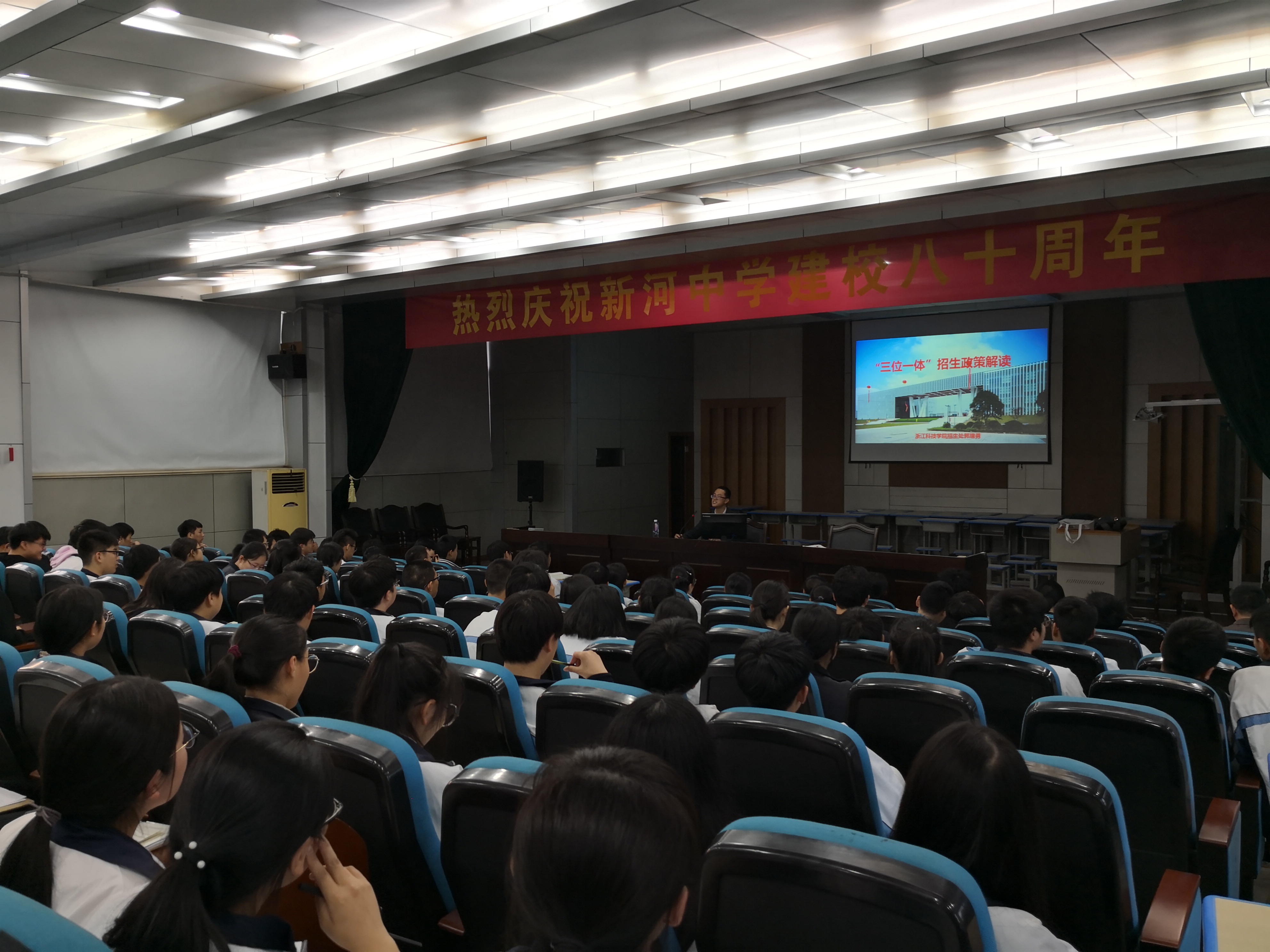 为了加强学校与中学的沟通和联系,通过主动服务不断加强优质生源基地建设,4月17日,HO5HO党委委员王宝明和招就处招生主管郭增勇赴温岭新河中学开展招生宣传咨询活动。报名参加我校“三位一体”综合测试及有意向报考我校的200余名中学生参加了咨询宣讲会,新河中学教务办主任陶正出席并主持了本次咨询宣讲会。
