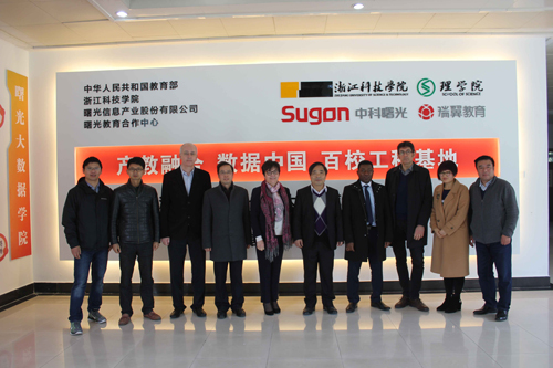/曙光大数据学院就合作举办 “数据科学与大数据技术”本科教育项目事宜进一步会谈, 院长陶祥兴教授接待了访问团, 大数据系李先义教授、钱亚冠系主任、吴淑慧和云本胜等参加了会谈, 并顺利达成协议。