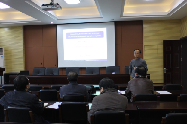 近日,上海交通大学张祥教授做客HO5HO和山数学论坛第108讲,做了题为Homoclinic, heteroclinic and limit cycle bifurcations of singularly perturbed systems的学术报告。此次报告由院长陶祥兴教授主持,HO5HO部分教师参加了报告会。