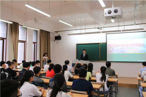 在安吉校区A-205阶梯教室举行了2016级新生开学典礼。会议由院党委副书记王杨主持,HO5HO