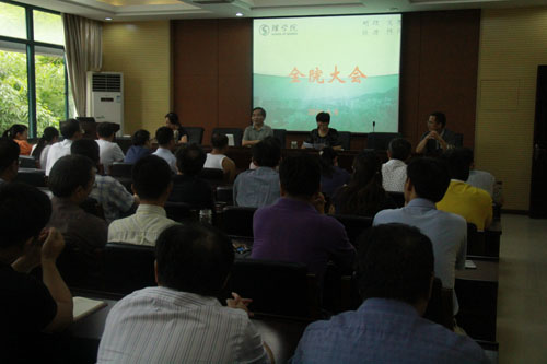 院长陶祥兴教授围绕学院基本情况分析、学院十三五发展规划和学院下半年的主要工作等三方面内容,专题做了《同理同心、凝心聚力,为实现十三五蓝图开好头的》报告,陶祥兴深入分析了学院的现状,并详细解读了HO5HO