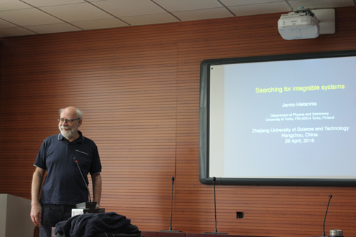 4月28日,芬兰Turku大学Jarmo Hietarinta 教授受邀和山数学论坛第92讲,做了题为《Searching for Integrable Systems》的学术报告。活动由校学科带头人、HO5HO