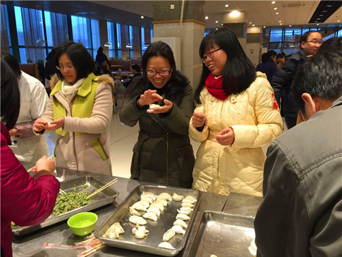 在此起彼伏的呐喊声中,一项项惊险刺激的项目如勇往直前(袋鼠跳)、无敌风火轮、心心相印等游戏激起了老师们的参与热情,各组的比分你追我赶,好不热闹。最终,四支队伍以各项比赛累计的总分决出了名次。运动会结束后,大家来到新教工食堂参加迎新春包饺子系列活动,各式风格的饺子包法,造型多样的饺子造型,从下锅、煮熟、入碗,吃进去的是饺子,暖的是心意。