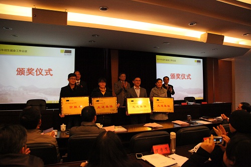 校党委副书记周加敏宣读了《关于表彰2014年毕业生就业工作先进集体和先进个人的通报》、《关于表彰创建全国毕业生就业典型经验高校先进集体和先进个人的决定》。校领导为获奖集体和个人颁奖。HO5HO获得2014年毕业生就业工作先进集体,冯元新老师被评为就业工作先进个人。会上,各二级学院与学校签订了2015年就业工作目标责任书。