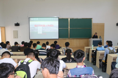 报告中,陈老师为大家介绍了机器人的发展与未来,并引用习主席在中国科学院第十七次院士大会、中国工程院第十二次院士大会上的讲话:“机器人革命有望成为第三次工业革命的一个切入点和重要增长点,将影响全球制造业格局。”陈老师认为,将来机器人一定会比人类更聪明。“曾经学校的机器人团队只有两个人,一名老师、一名学生。因为对机器人的执着,我们不懈努力,取得了一些的成绩。如今,曾经的学生和当年的老师一起,带领着学校的JT机器人团队征战全国,斩获不少奖项,有了一定的突破。”回忆起当初的努力与坚持他说起了这些。在科研的道路上只有不怕苦不怕累,坚持不懈才能有成果!